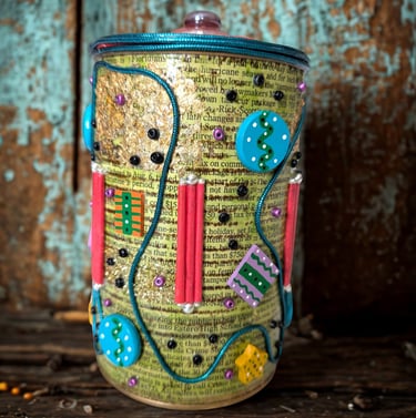 These one-of-a-kind pieces are made from rescued cans and jars, lovingly transformed to be both beautiful and useful. Regifting Jars are meant to be filled with treats, shared with someone special, then passed along again — like a little jar of joy that keeps traveling. The upcycled cans are sturdy, stylish, and ready for whatever you dream up — from storage to sweet little gifts.